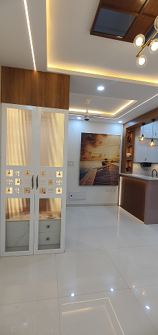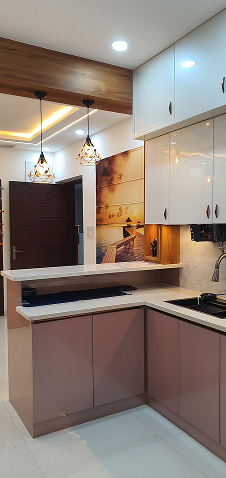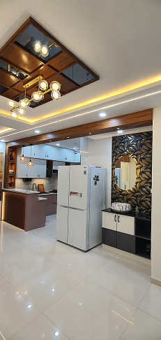 Aakriti Miro in Nallagandla, Hyderabad, showcases a 3BHK budget home interior design that blends modern looks with everyday comfort. The modular kitchen, styled in coffee and white shades, offers smart storage and a sleek finish. Bedrooms are arranged with balance for work and relaxation, while the living room features warm lighting and a clean layout. Each detail has been planned to keep the interiors stylish yet practical. This 3BHK budget home interior design highlights how beauty and function can come together within budget