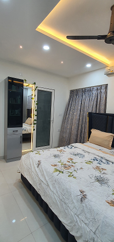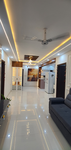 Aakriti Miro in Nallagandla, Hyderabad, showcases a 3BHK budget home interior design that blends modern looks with everyday comfort. The modular kitchen, styled in coffee and white shades, offers smart storage and a sleek finish. Bedrooms are arranged with balance for work and relaxation, while the living room features warm lighting and a clean layout. Each detail has been planned to keep the interiors stylish yet practical. This 3BHK budget home interior design highlights how beauty and function can come together within budget